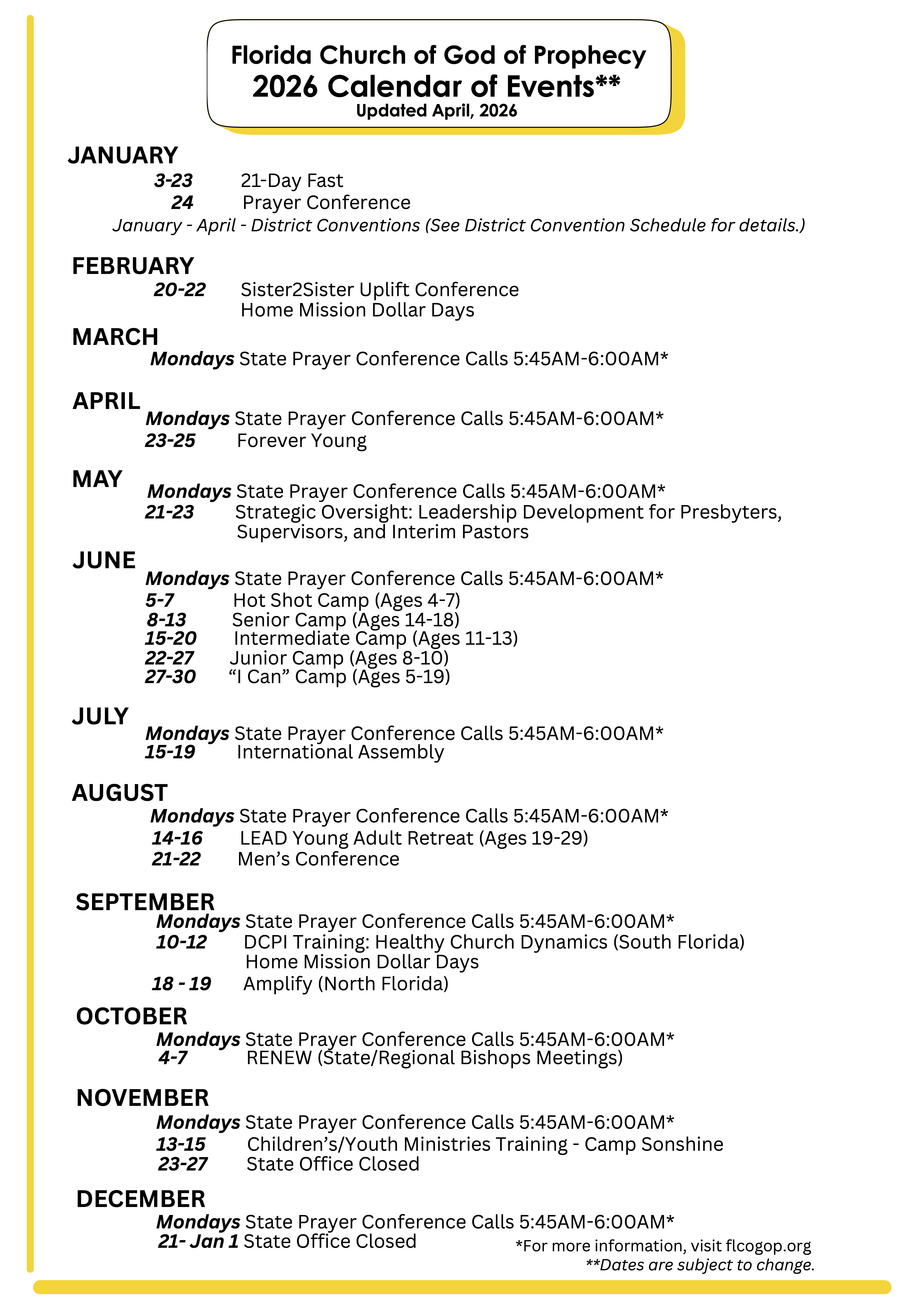 2026 Florida State Events Calendar