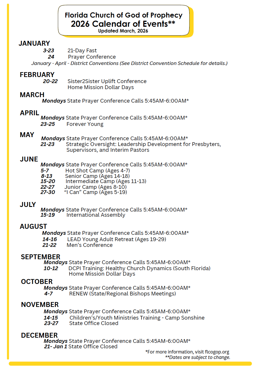 Welcome to Church of God of Prophecy Florida State Office. Have questions, suggestions, or just want to say hello? We'd love to hear from you! Use the contact form below to get in touch with us: